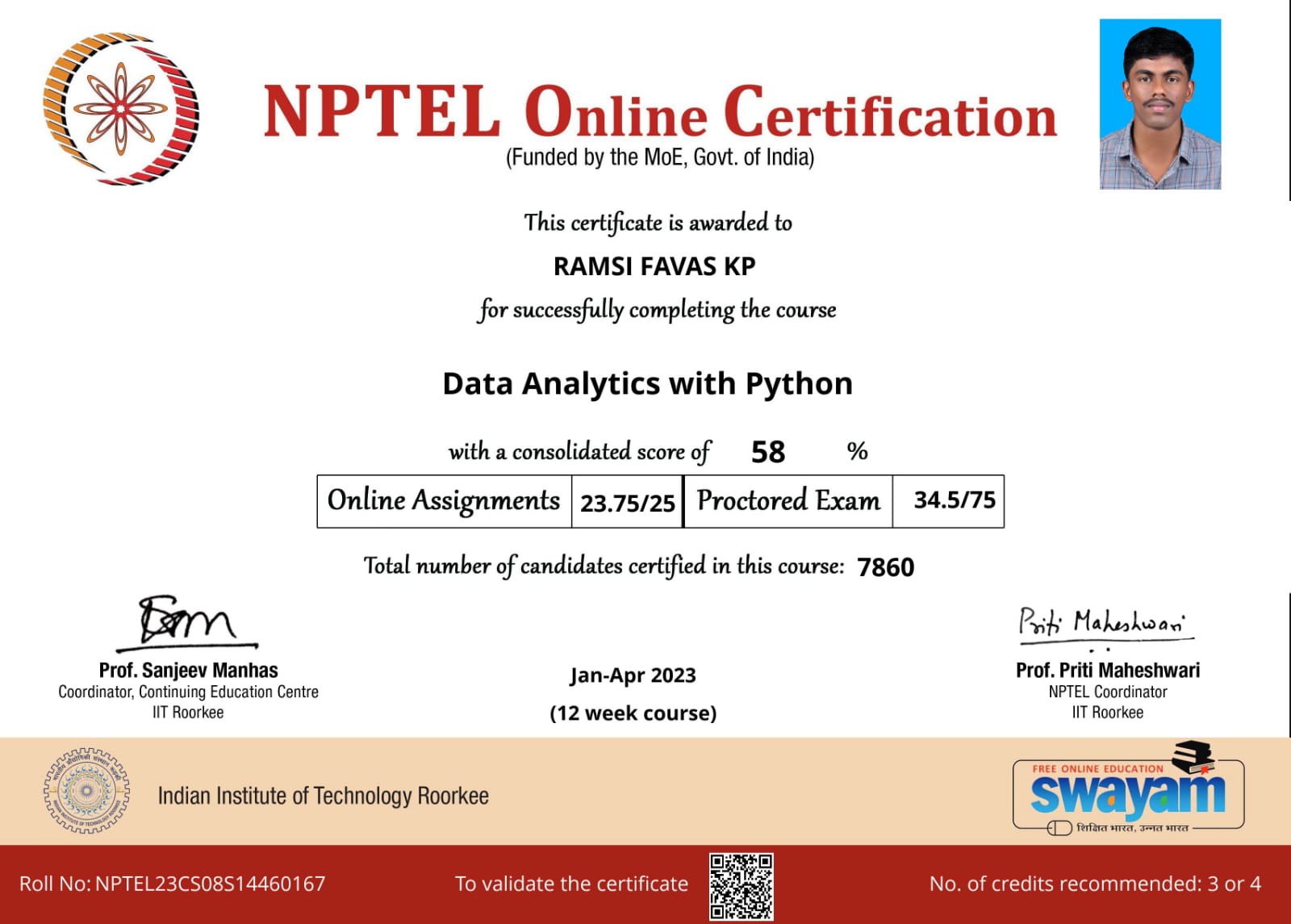 NPTEL(Founded by the MoE, Govt.of India) - April 2023